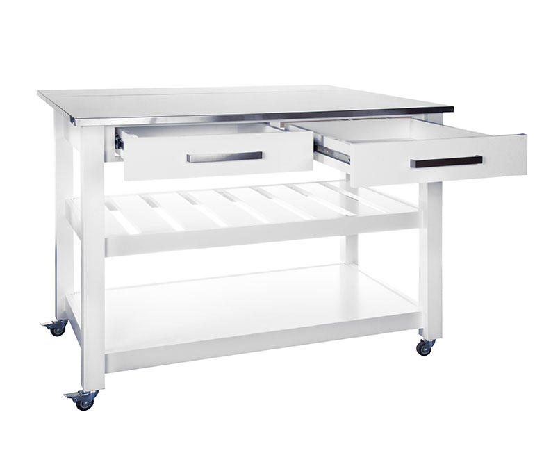 People love our versatile movable kitchen islands. It’s a great addition to cabinets for extra storage. It creates an open space for cooking whether you are alone, with friends or your family. Add some counter stools and it becomes a working area, or it replaces a dining table. In summary, our movable kitchen island will become the centerpiece of your kitchen for cooking, working or just having a drink before a night out on the town.